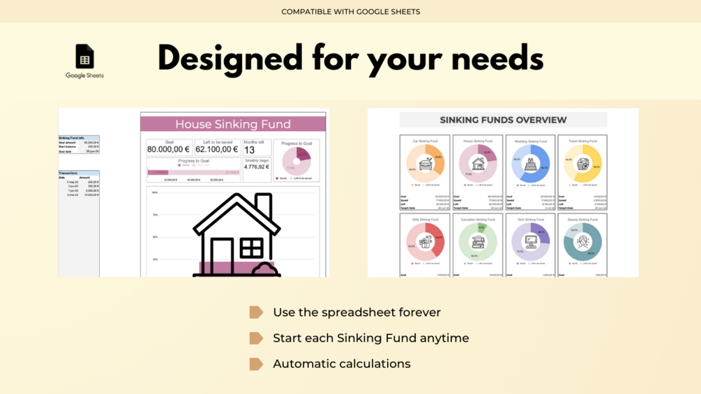 Take control of your financial future and achieve your goals with our powerful Sinking Funds Tracker - Google Sheets compatible.
